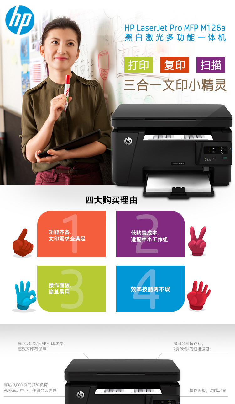 惠普/HP LaserJet Pro MFP M126a多功能一体机 A4黑白激光多功能一体机 打印/复印/扫描
