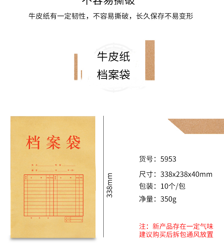 得力/deli 5953文件袋 混浆牛皮纸A4档案袋10个/包 标书合同文件资料袋 办公用品