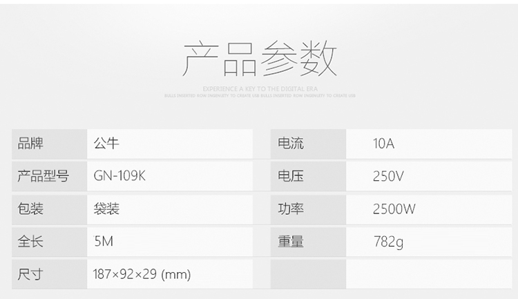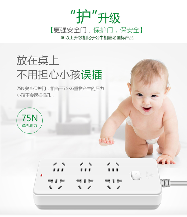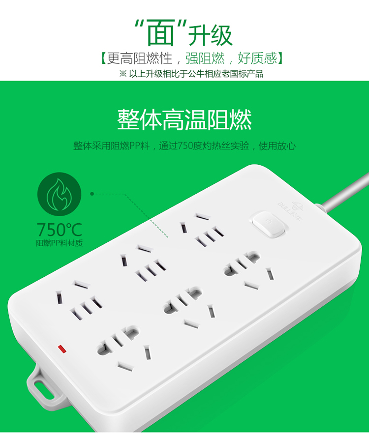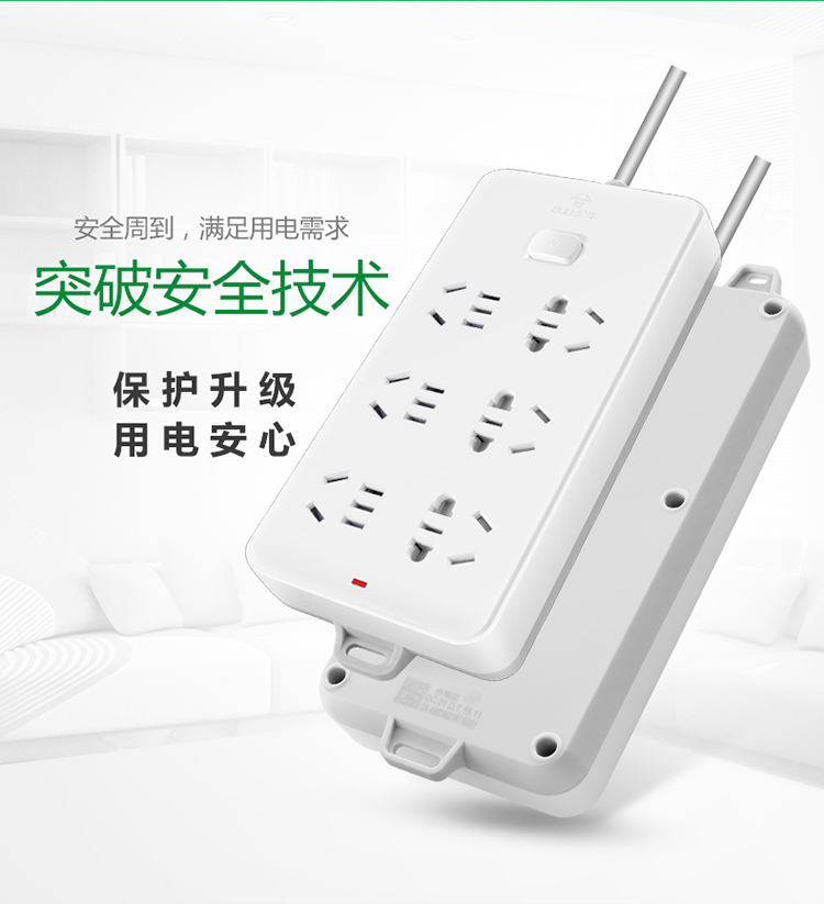 公牛(BULL)新国标插座防触电保护门6位总控插线板5米插线排GN-109K