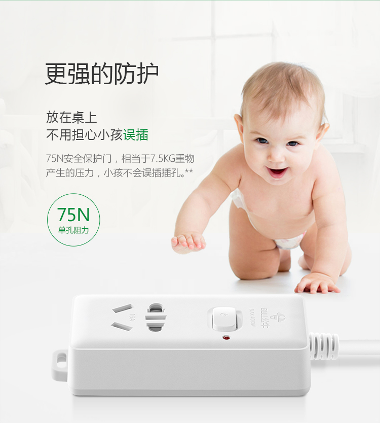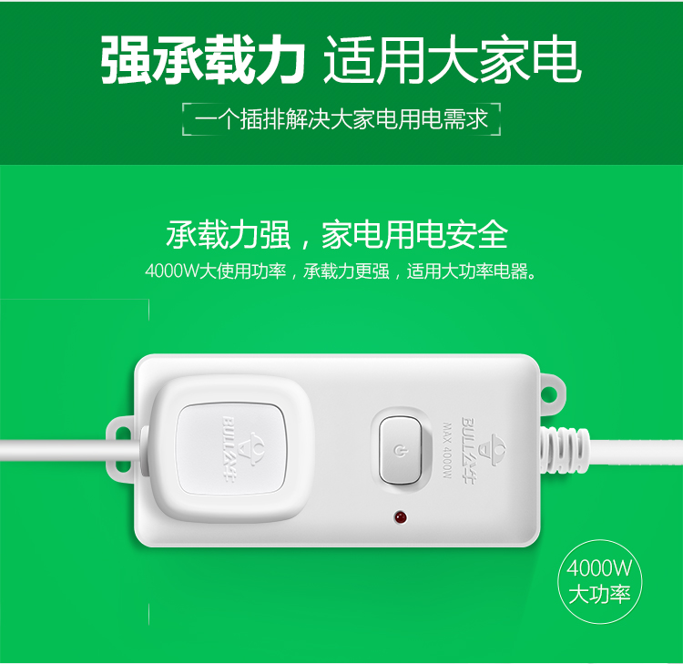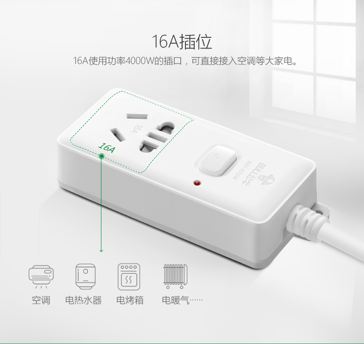 公牛(BULL)新国标大功率16A插座空调插座插排插线板1位无开关GN-103D 1.8米