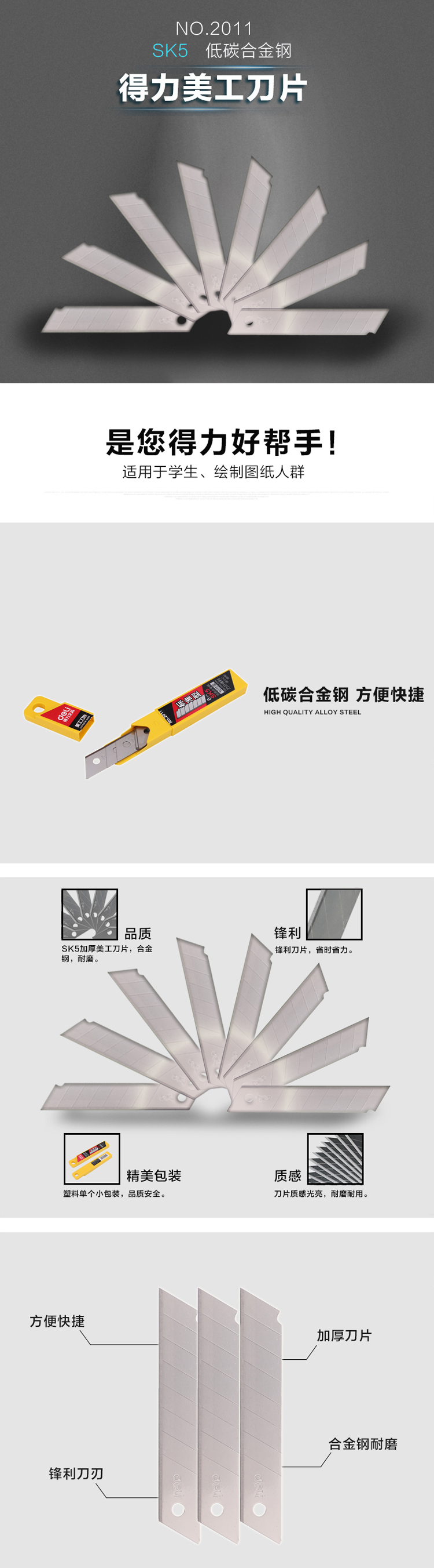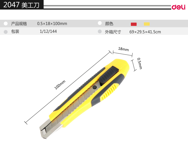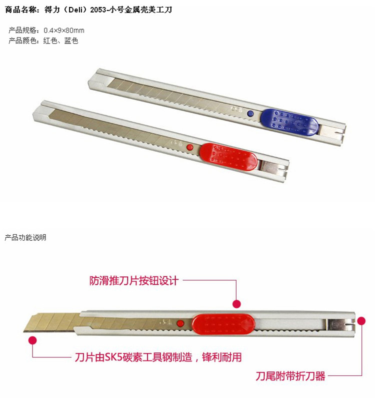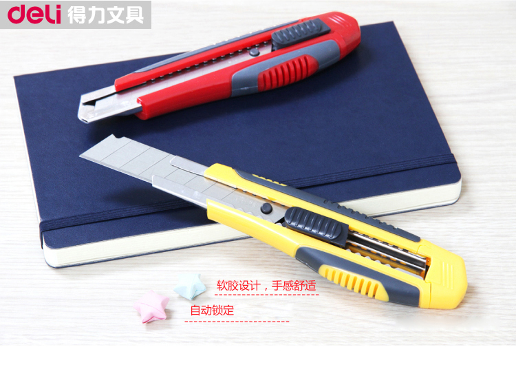 得力(deli) 美工刀 小号大号耐用塑料壳美工刀/裁纸刀/刀片 颜色随机 小号金属2053