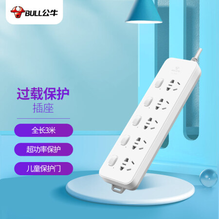 公牛(BULL)新国标插座/插线板/插排/排插/接线板/拖线板 5位分控全长3米 超功率保护插座 GN-312