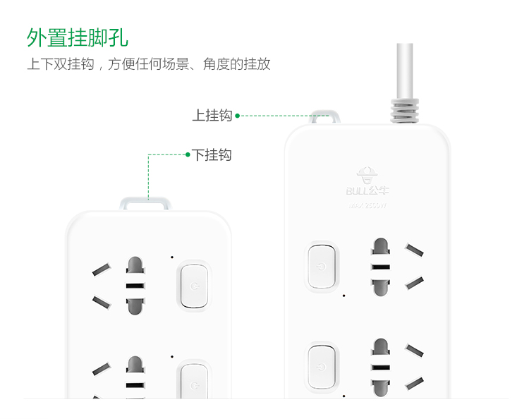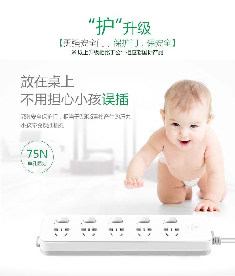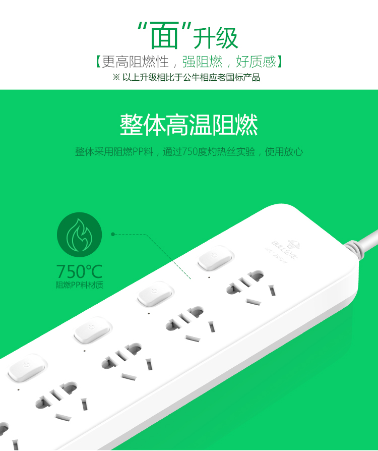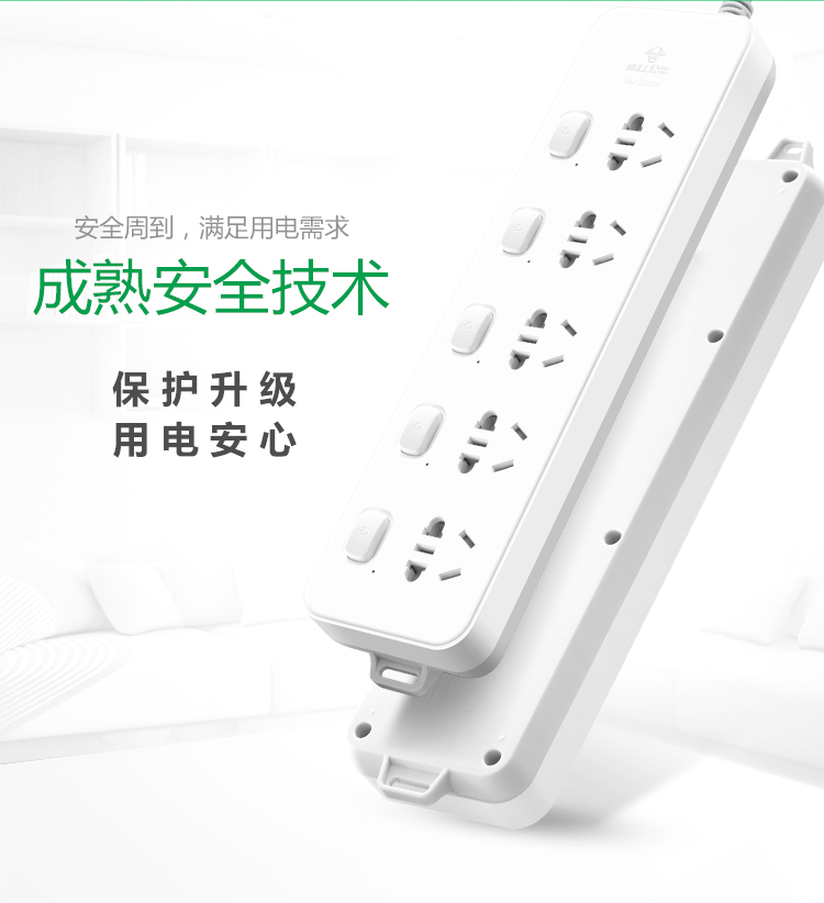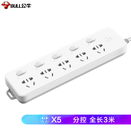 公牛(BULL)新国标插座/插线板/插排/排插/接线板/拖线板 5位分控全长3米 超功率保护插座 GN-312