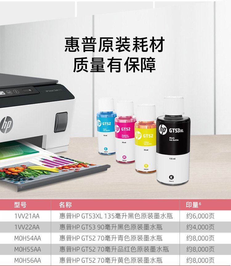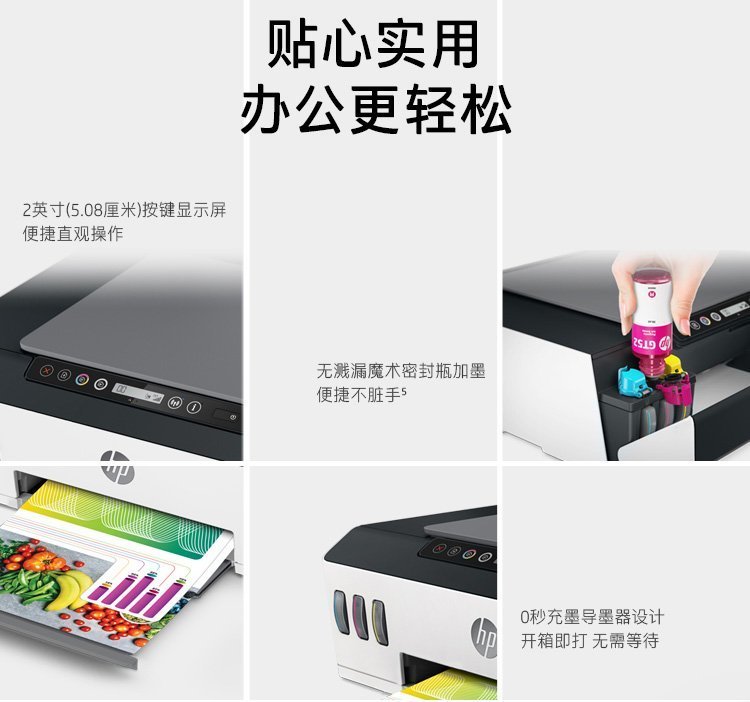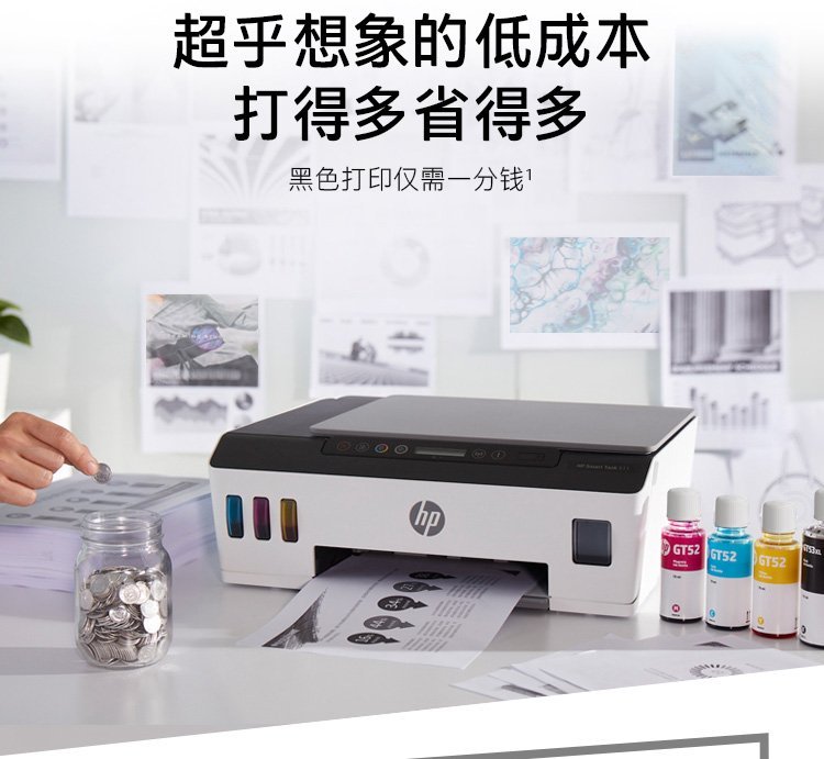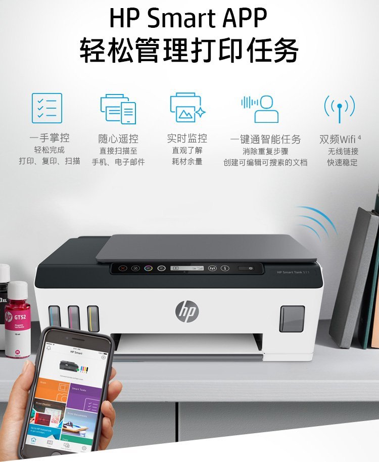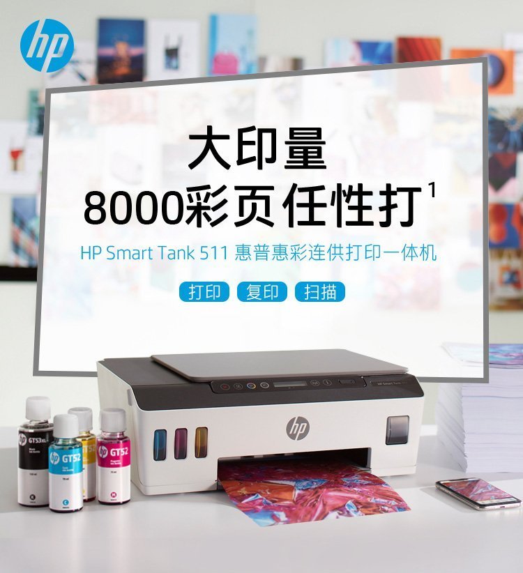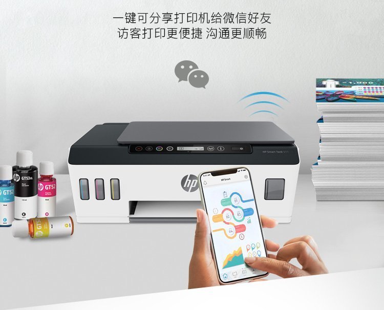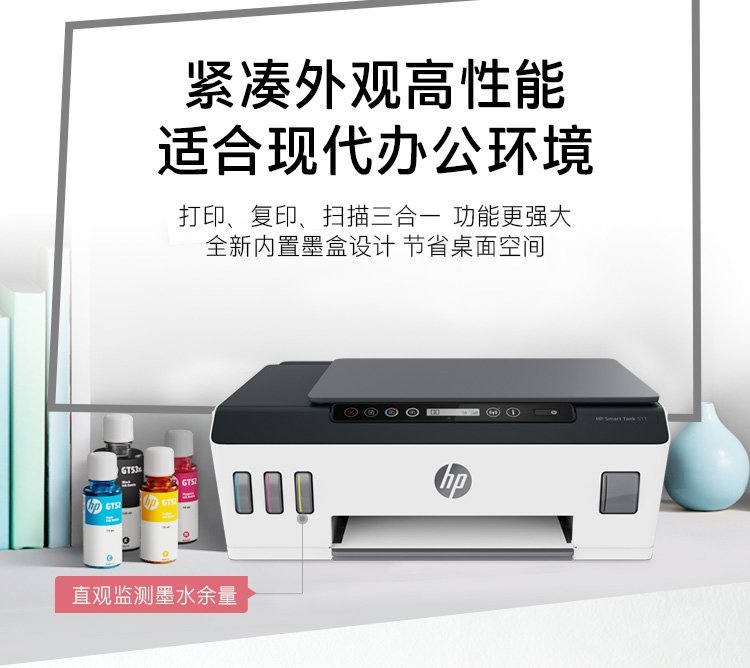 惠普(HP)Smart Tank 511 惠彩连供无线打印一体机 彩色打印复印扫描 家庭打印 商用办公